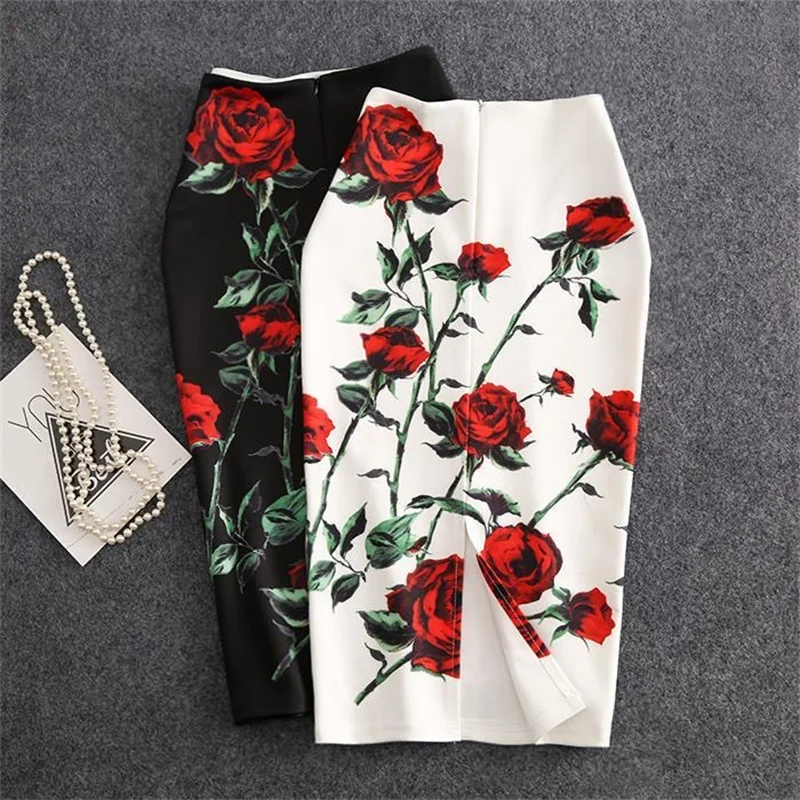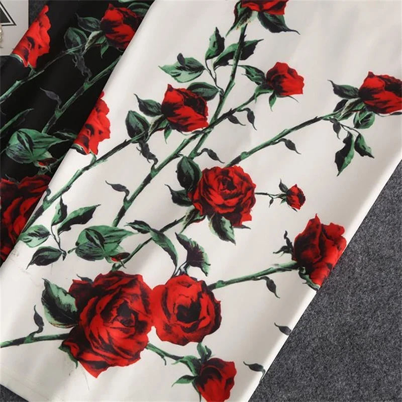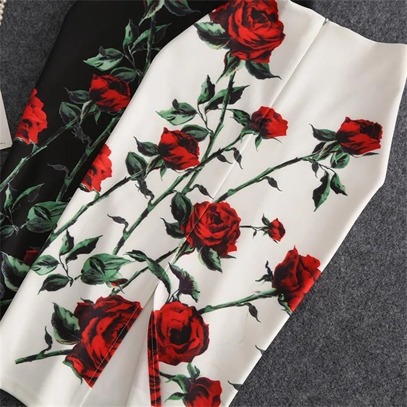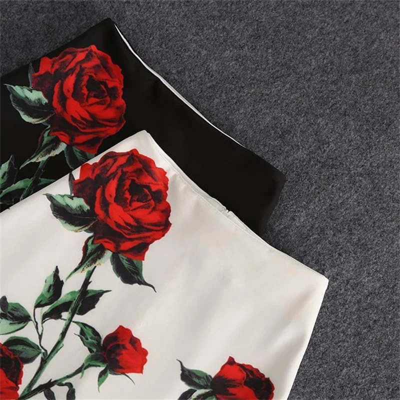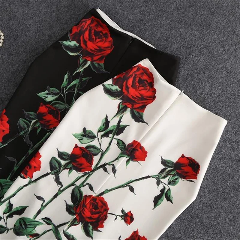Striking red rose print on a crisp white base for a bold streetwear statement