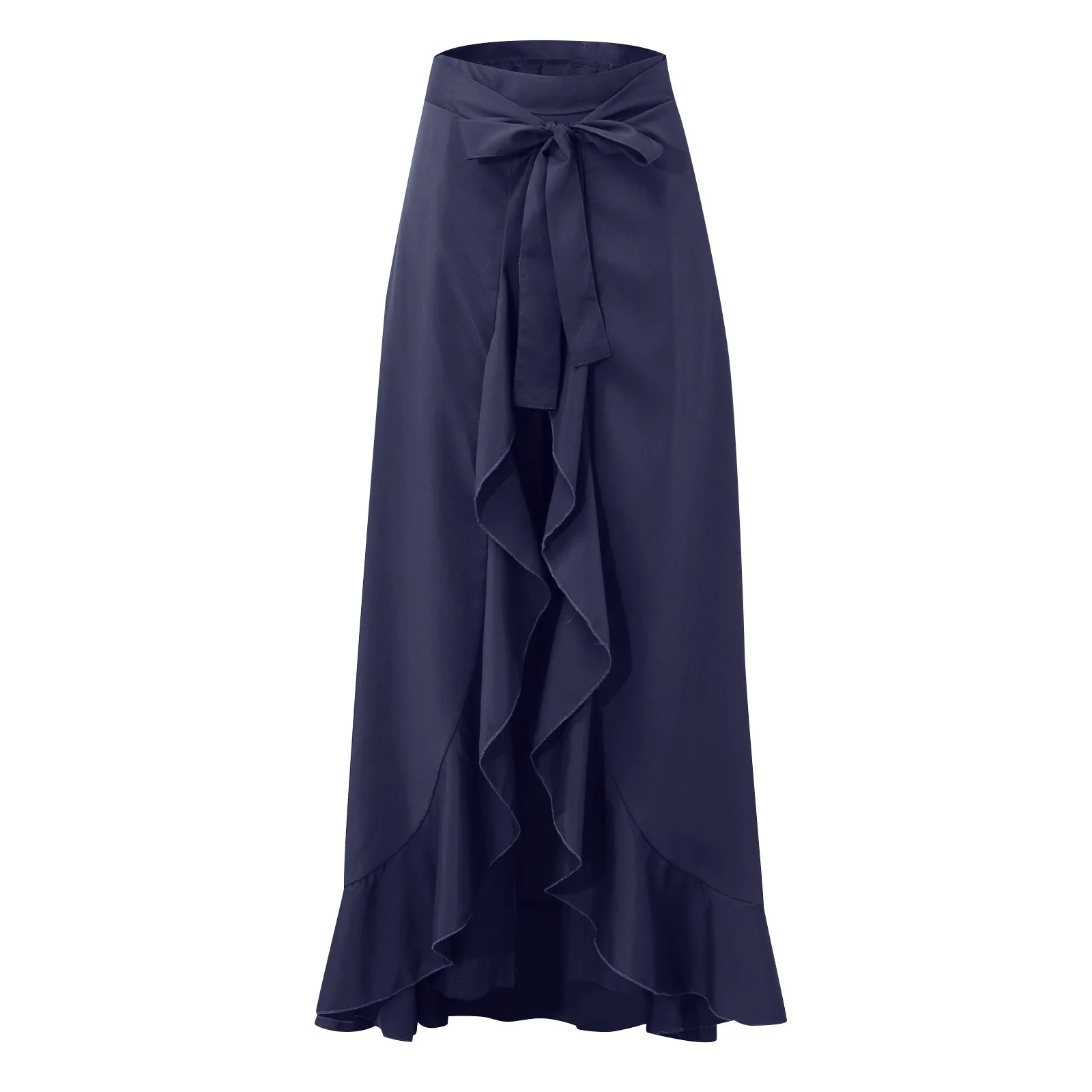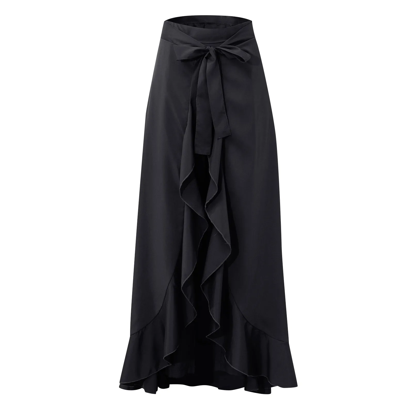 Elegant double-layer design with dramatic high-low ruffle hem